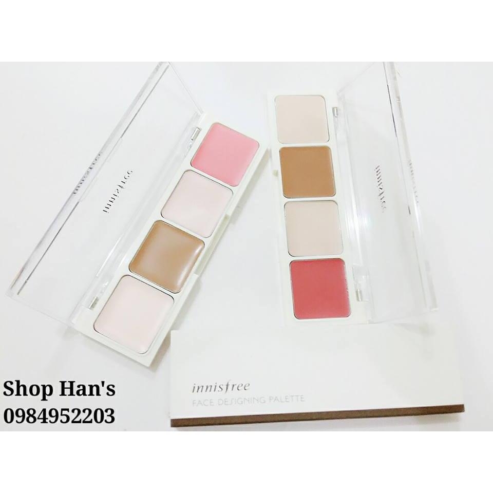 - Bảng tạo khối Innisfree Face Designing Palette Là bộ bảng màu giúp tạo khối hoàn hảo cho khuôn mặt với kết cấu dạng kem gồm có tạo khối, hight light, má hồng. Innisfree cho ra mắt bảng màu vô cùng tiện lợi, khác hẳn với phong cách thường đi theo sản phẩm riêng lẻ từ xưa đến nay của hãng.