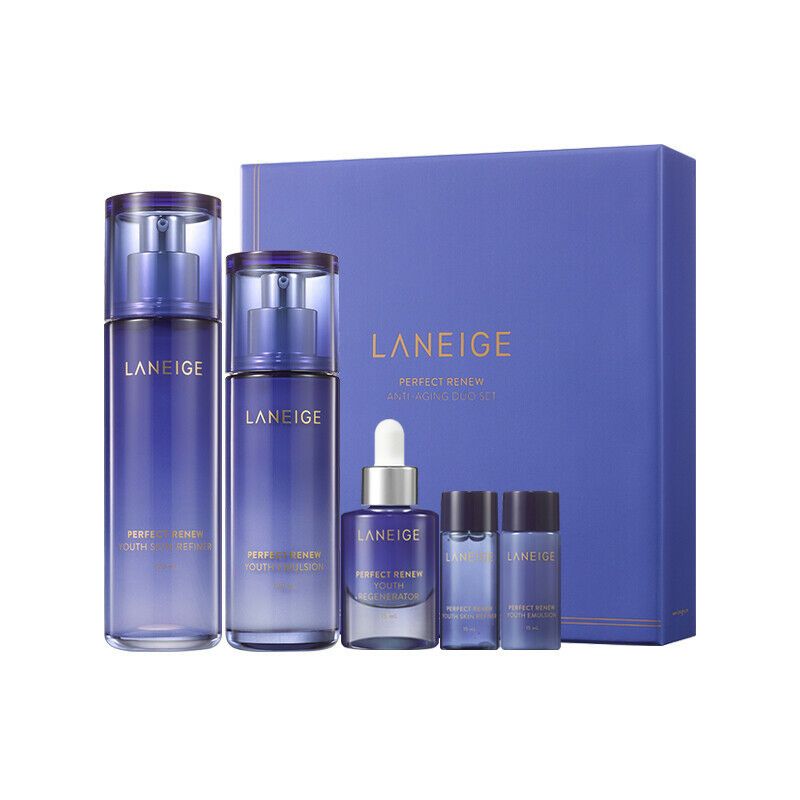 Laneige Perfect Renew Anti - Aging Duo Set vận dụng công thức làm đẹp từ nước một cách tự nhiên và hệ thống thông qua những cơ chế chăm sóc da đơn giản và cơ bản nhất .