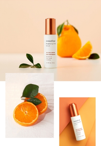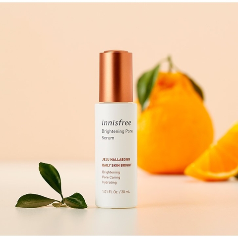 Tinh chất dưỡng trắng da mờ thâm Innisfree Brightening Pore Serum chiết xuất từ vỏ quýt Hallabong, chăm sóc các nhược điểm, giúp làn da thêm căng mịn và sáng ngời, Kết cấu mỏng nhẹ như nước mà không bết dính. Thẩm thấu và cấp nước nhanh chóng, giúp dưỡng chất đi sâu vào nuôi dưỡng và bù đắp lượng nước thiếu hụt trên da.