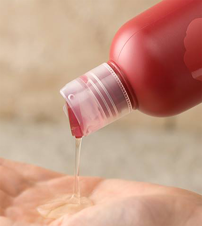 B2: Lấy một ít Dầu gội phục hồi tóc Innisfree Camellia Essential Shampoo vừa đủ ra tay.