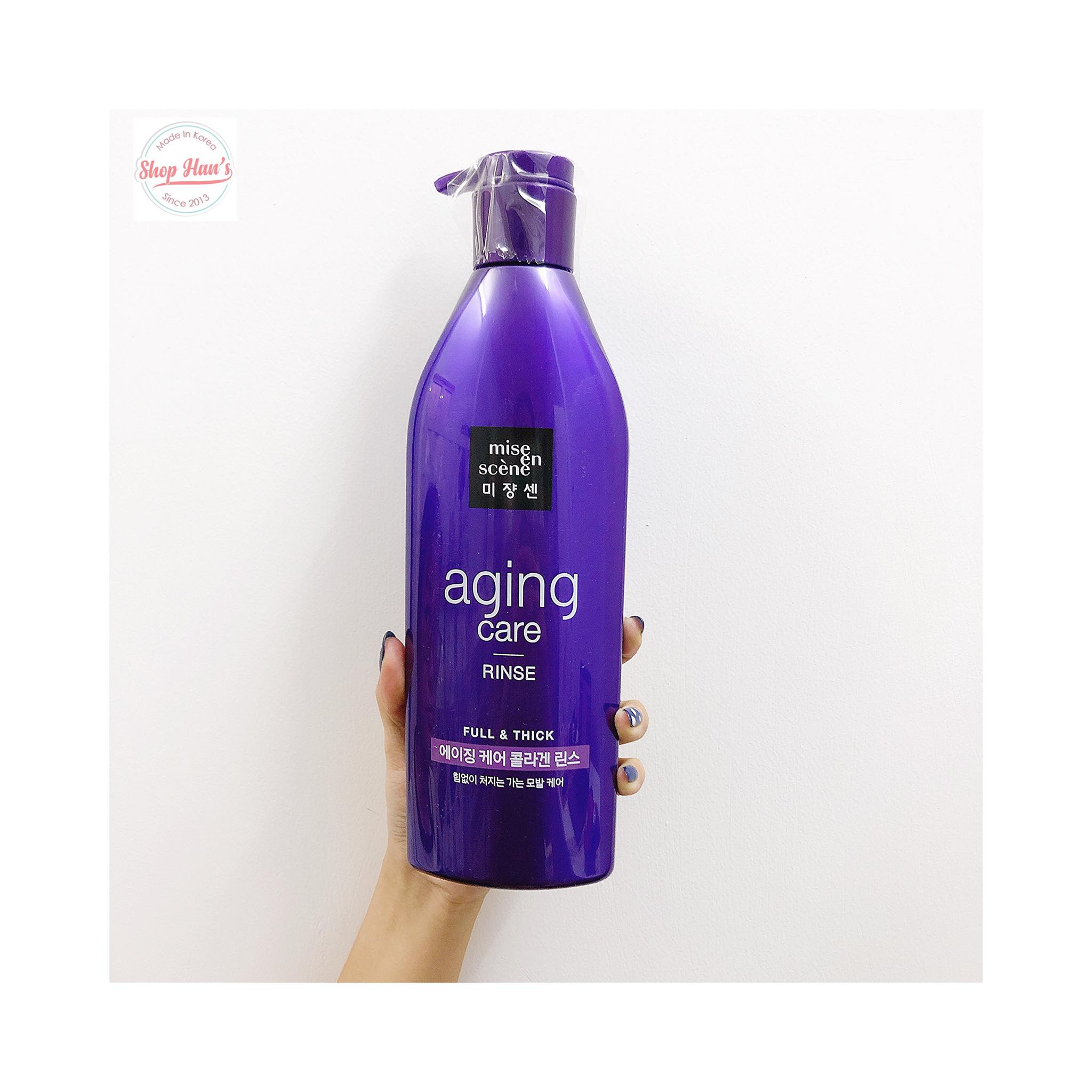 Dầu xả Mise En Aging Care (Màu tím) 680ml: được chiết xuất từ các thành phần thiên nhiên tạo nên một công thức mới cho mái tóc bạn luôn mượt mà, bóng khỏe ngăn ngừa các tác nhân gây hại cho tóc. Sản phẩm có tác dụng chống lão hóa toàn diện, phục hồi tóc hư tổn,chẻ ngọn, và gãy rụng nhiều.