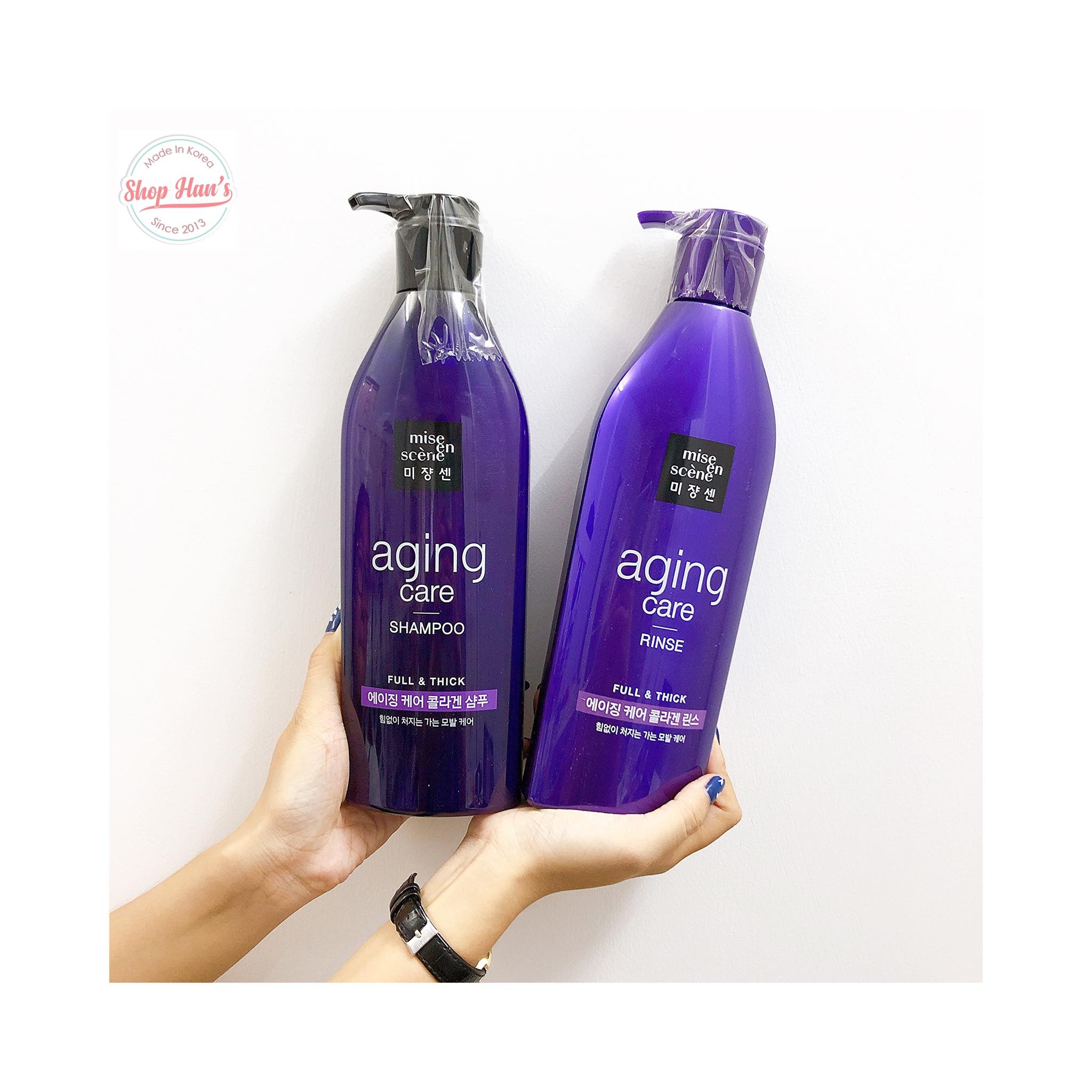 - Dầu gội phục hồi và chống gãy rụng tóc Mise En Scene Aging Care Shampoo bổ sung thành phần hợp chất protein giúp mái tóc bị hư tổn được phục hồi nhanh chóng do tiếp xúc với tia tử ngoại dưới điều kiện trời nắng gắt cũng như các tác nhân khói bụi, mấy sấy và hóa chất…