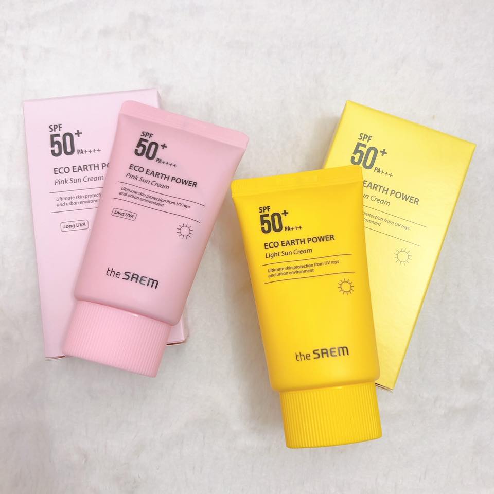 - Kem chống nắng The Saem Eco Earth Power Pink Sun Cream thuộc dòng kem chống nắng vật lý là sự kết hợp hoàn hảo của công thức bảo vệ da đặc biệt cùng bột làm dịu calamine màu hồng.