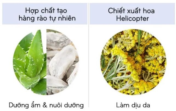 _ Chiết xuất từ hoa Helichrysum Italicum (Hoa cúc bất tử): Giúp bảo vệ và làm dịu da khi đi dưới ánh nắng mặt trời, ngăn chặn sự gây hại của tia UV.
