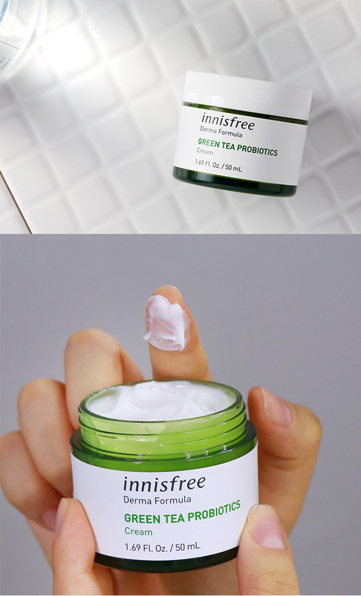 Kem dưỡng ẩm Innisfree Derma Formula Green Tea Probiotics Cream Cung cấp độ ẩm dài lâu vào sâu trong tế bào da, làm dịu da, giúp da tươi trẻ mịn màng.
