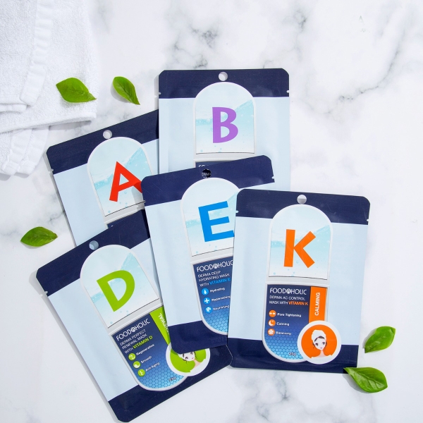 Mặt nạ FOODAHOLIC Derma Mask A có các loại Vitamin A,B,C,D,E,K