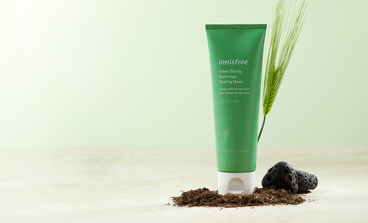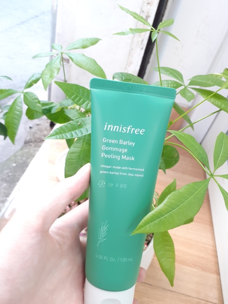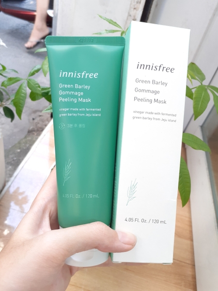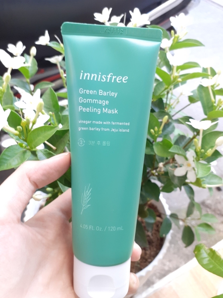 - Mặt Nạ Tẩy Da Chết Innisfree Green Barley Gommage Peeling Mask chiết xuất Lúa Mạch Xanh lên men có chứa chất xơ và protein cung cấp độ ẩm làm mềm da mang lại cho làn da mịn màng tươi trẻ, loại bỏ da xỉn màu.