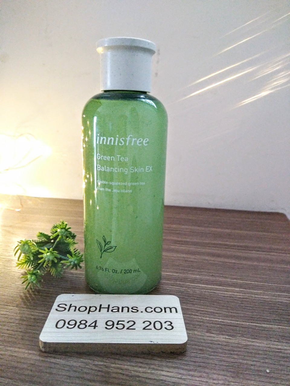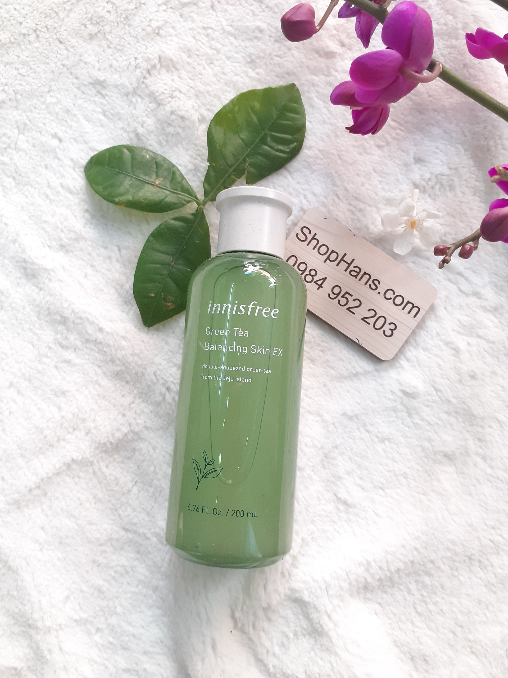- Innisfree Green Tea Balancing Skin chứa dưỡng chất đến từ 100% những hạt trà xanh đã trải qua quá trình chắt lọc nguyên chất bằng công nghệ cải tiến hoàn toàn mới trực tiếp trên đảo Jeju Hàn Quốc.