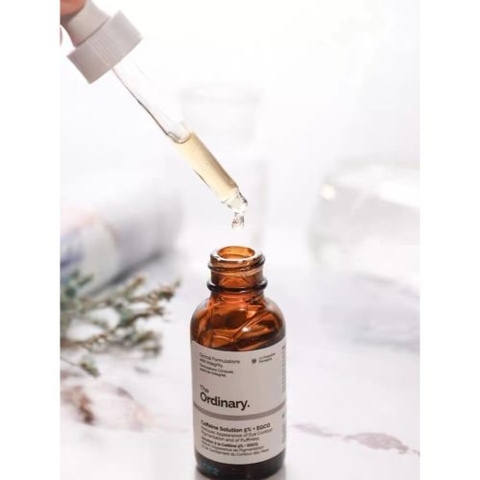 Serum dưỡng mắt của The Ordinary Caffeine Solution 5% + EGCG Serum - sản phẩm serum cho da mắt tốt nhất được đánh giá 5 sao tròn trĩnh trên các diễn đàn làm đẹp.