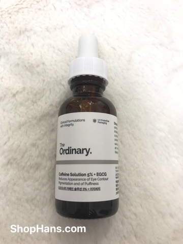 Trong các sản phẩm của The Ordinary, đây là serum duy nhất được thiết kế "dưỡng vùng mắt". Với hai thành phần chính là tinh chất caffein ở nồng độ cao và chất chống oxy hoá lừng lẫy EGCG được chiết xuất từ trà xanh, "The Ordinary Caffeine Solution 5% + EGCG" được nhà sản xuất cho rằng có thể cải thiện được tình trạng bọng và thâm quầng mắt dựa trên một tài liệu nghiên cứu độc lập.