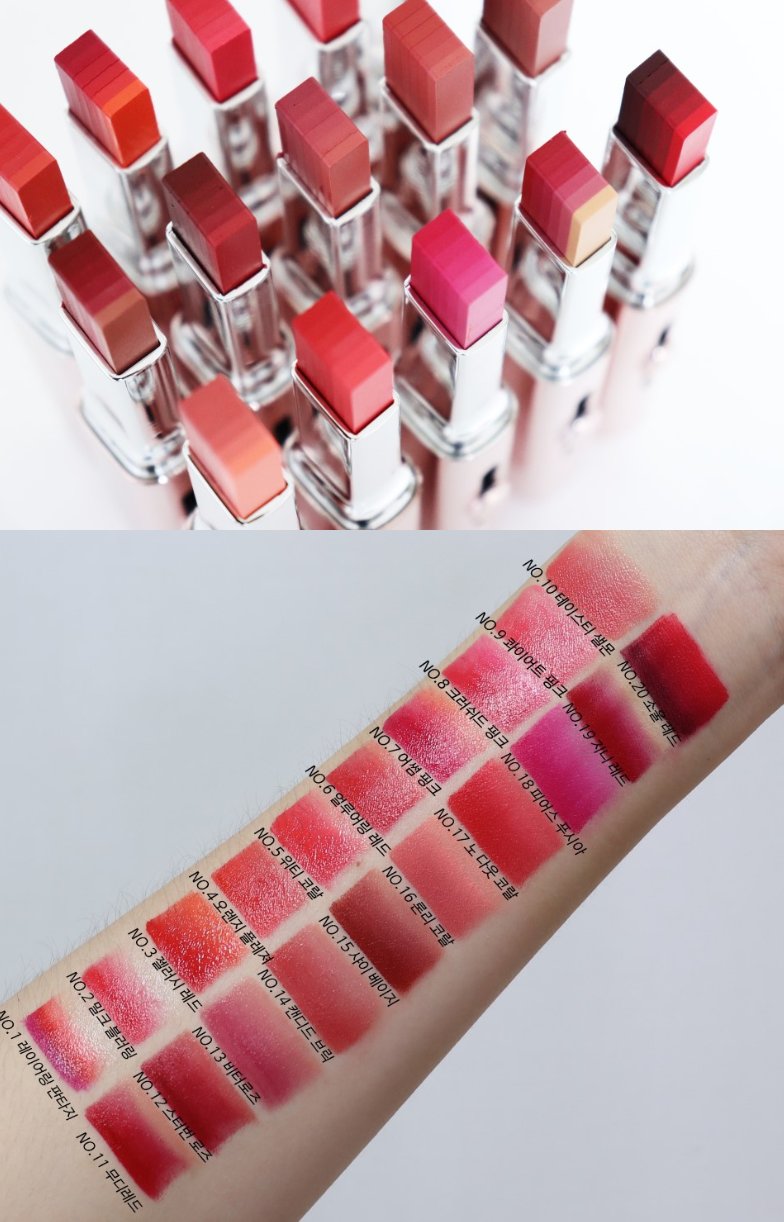 - Laneige Layering Lip Bar gồm có 20 sắc môi, mỗi cây son có đến 6 tầng sẽ mang đến một phong cách trang điểm đa dạng từ tự nhiên cho đến nổi bật. Chưa kể đến đó là đầu son 4 cạnh vuông góc, rất sắc nét kết hợp với thiết kế layer sẽ tạo nên hiệu ứng lòng môi đầy sống động.