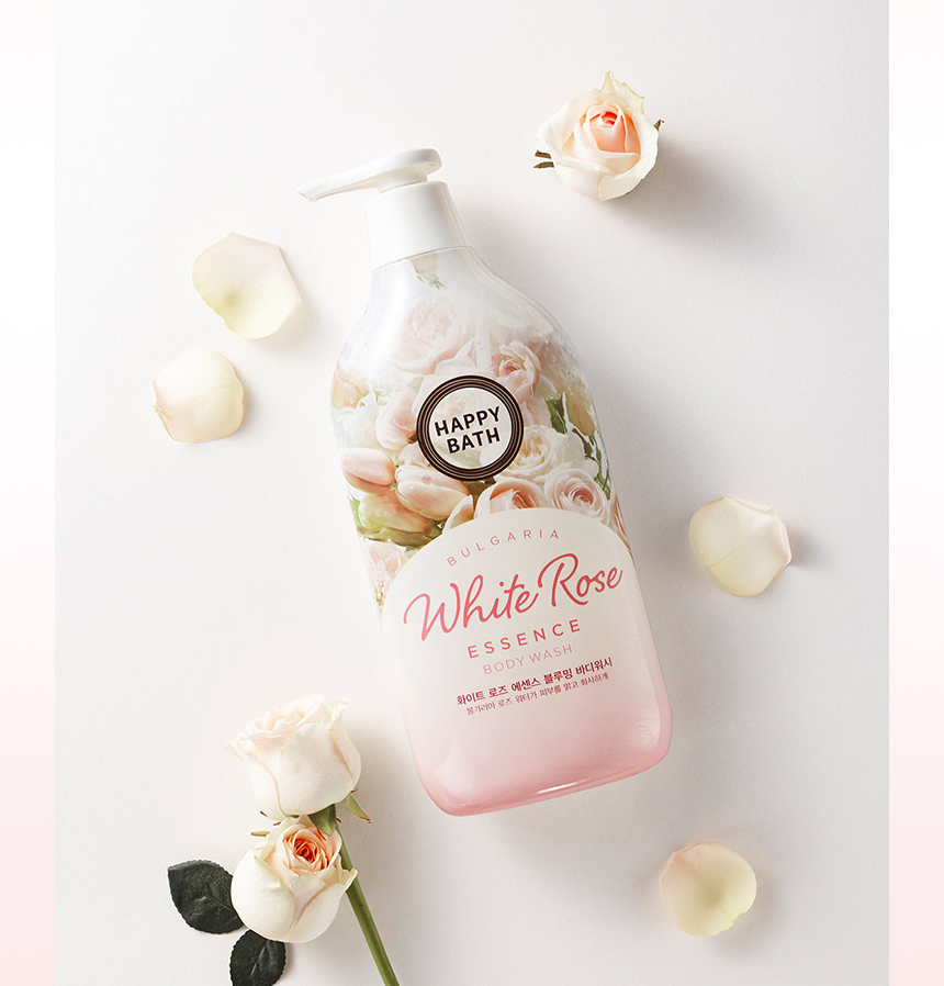 - Sữa Tắm Dưỡng Ẩm Và Sáng Da Chiết Xuất Hoa Hồng Happy Bath White Rose Essence mang mùi thơm nhẹ nhàng của hoa thục quỳ, hoa hồng, oải hương, gạo...Hương thơm dịu nhẹ cùng với các tinh chất chăm sóc làn da, nhanh chóng mang đến cho bạn cảm giác dễ chịu và giảm stress.