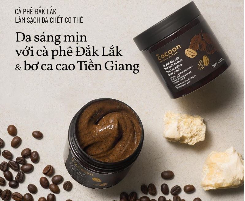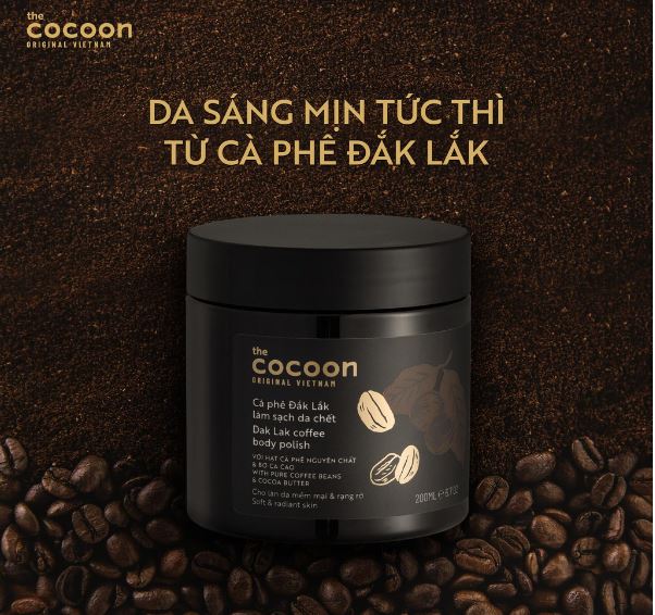 Tận dụng lợi thế Việt Nam là nước xuất khẩu cà phê đứng thứ 2 thế giới, Cocoon đã nghiên cứu và tận dụng nguồn nguyên liệu tự nhiên, giàu dưỡng chất này thành thành phần chính trong sản phẩm Tẩy Da Chết Body Cocoon Cà Phê Đắk Lắk. Theo đó, hạt cà phê được chọn lọc và xay nhuyễn thành bột sao cho có thể dễ dàng loại bỏ những lớp da chết “ngoan cố” còn trú ngụ trên da mà không làm tổn thương da. Cà phê Đắk Lắk giúp làm đều màu da, cho da sáng mịn, săn chắc, khỏe mạnh.