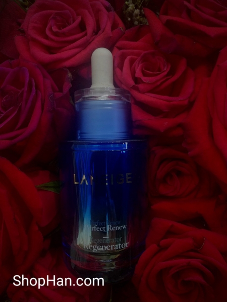 - Tinh chất dưỡng da chống lão hóa Perfect Renew Regenerator được ra đời từ ứng dụng công nghệ tái sinh (Skin Rebirth™ Technology) mới, do viện nghiên cứu và đào tạo của AMOREPACIFIC với nhiều kinh nghiệm trong lĩnh vực về da kết hợp cùng A*STAR Singgapore , là một nhóm chuyên gia nghiên cứu về y tế sinh học, phát triển. Laneige phát triển công nghệ này sau khi khám phá ra loại gel thanh xuân PYCR1 giúp can thiệp và làm chậm quá trình lão hóa bằng cách tăng cường năng lượng cho các tế bào gốc trên da .